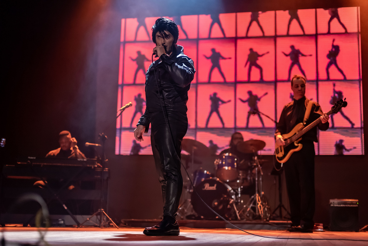 no papel de Elvis, um roadie, um técnico de som e um técnico de luz. As músicas são tocadas e cantadas 100% ao vivo sem playback. Pode ou não ter o acréscimo de outros músicos complementares dependendo do orçamento. Apenas um figurino do Elvis é utilizado, nos moldes do show de Las Vegas na década de 70. O repertório consiste só com os maiores sucessos da carreira de Elvis. Tem uma duração de 1h30 à 2h.